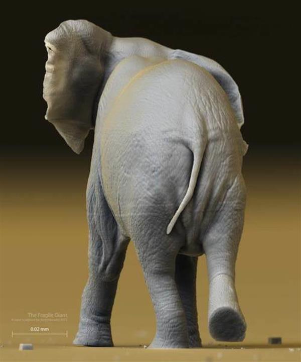 近日,有位藝術(shù)家Jonty Hurwitz創(chuàng)作了一只體積比塵埃更小的大象,連肉眼也看不清楚。這頭大象的長(zhǎng)度只有約0.1mm。Jonty Hurwitz說(shuō)這個(gè)藝術(shù)品的名稱叫脆弱的巨人(Fragile Giant),利用了新型3D列印技術(shù)-多光子光刻(Multiphoton Lithography) 去創(chuàng)造出來(lái)。