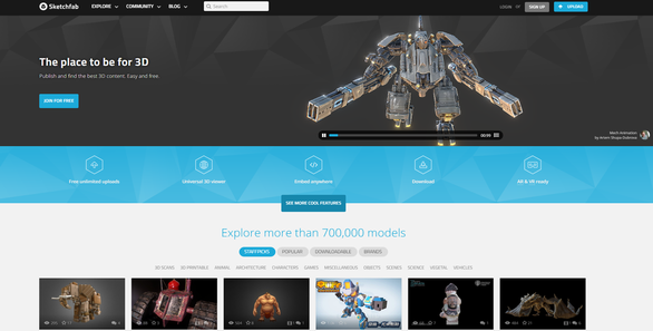 Sketchfab網(wǎng)站內(nèi)有各式各樣的3D模型供瀏覽及下載,你可調(diào)校不同角度去欣賞各種3D模型。有些3D檔案是讓用家3D打印出來的,如果帶上vr虛擬實境設備,在3D打印前,用家就更能夠親身體驗到3D模型的形狀與大小。除了可3D打印的3D模型外,有些模型更是以動畫形式展示。