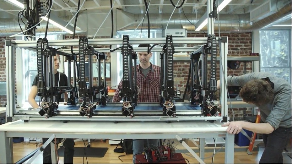 打印大型3d打印模型的話,一般市面上見到的單/雙噴頭3d打印機(jī)會(huì)需要很沉長(zhǎng)的打印時(shí)間,但你有沒有見過5個(gè)噴頭的3d打印機(jī)呢?最近Autodesk就實(shí)行了一個(gè)叫Escher的project。這project的目的是希望可以找到提高制造大型3d打印模型速度和效率的方法,經(jīng)過不斷研發(fā),他們?cè)炝艘豢?個(gè)噴頭能同時(shí)運(yùn)作的3d打印機(jī),樣子有點(diǎn)像織布機(jī)。這部機(jī)能讓5個(gè)噴頭分工合作,每個(gè)噴頭負(fù)責(zé)3d打印模型的某一部份,之后將整個(gè)大型3d打印模型完整地打印出來。