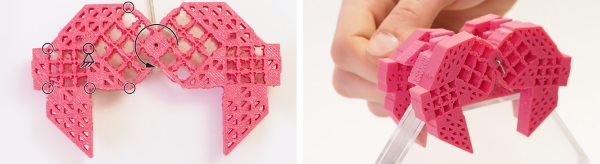 超材料機械原理是在模型上加上一些立方體的幾何結(jié)構(gòu),加了之后模型就能夠向某個方向接疊起來。這種3d模型制作技巧十分適合應(yīng)用在3D打印上,因為3D打印機能夠一次過地把這種技巧制作出來的模型打印出來。