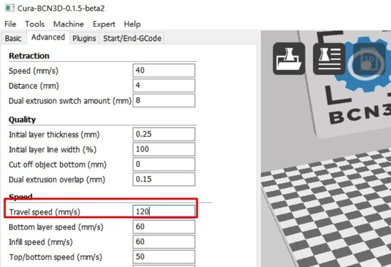 Print Speed及Travel Speed這個不用說大家都知道這兩個功能是用來調(diào)校打印噴頭的移動速度,另外,Print Speed及Travel Speed可以加快到多少很取決于模型大小及復(fù)雜性。在CURA 3D打印軟件可在這里設(shè)定: