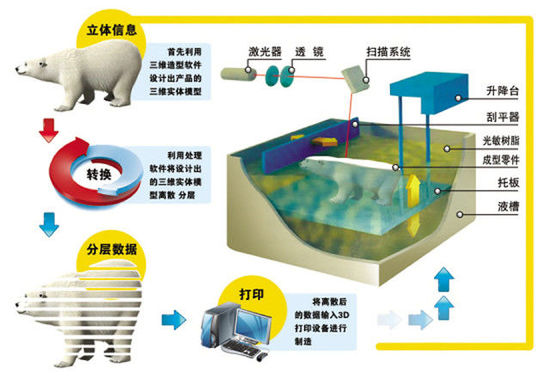 光固化成形是最早出現(xiàn)的快速成形工藝。其原理是基于液態(tài)光敏樹脂的光聚合原理工作的。這種液態(tài)材料在一定波長(x=325nm)和強(qiáng)度(w=30mw)的紫外光的照射下能迅速發(fā)生光聚合反應(yīng), 分子量急劇增大, 材料也就從液態(tài)轉(zhuǎn)變成固態(tài)。光固化成型是目前研究得最多的方法,也是技術(shù)上最為成熟的方法。一般層厚在0.1到0.15mm,成形的零件精度較高。 多年的研究改進(jìn)了截面掃描方式和樹脂成形性能,使該工藝的加工精度能達(dá)到0.1mm,現(xiàn)在最高精度已能達(dá)到0.05mm。但這種方法也有自身的局限性,比如需要支撐、樹脂收縮導(dǎo)致精度下降、光固化樹脂有一定的毒性等。